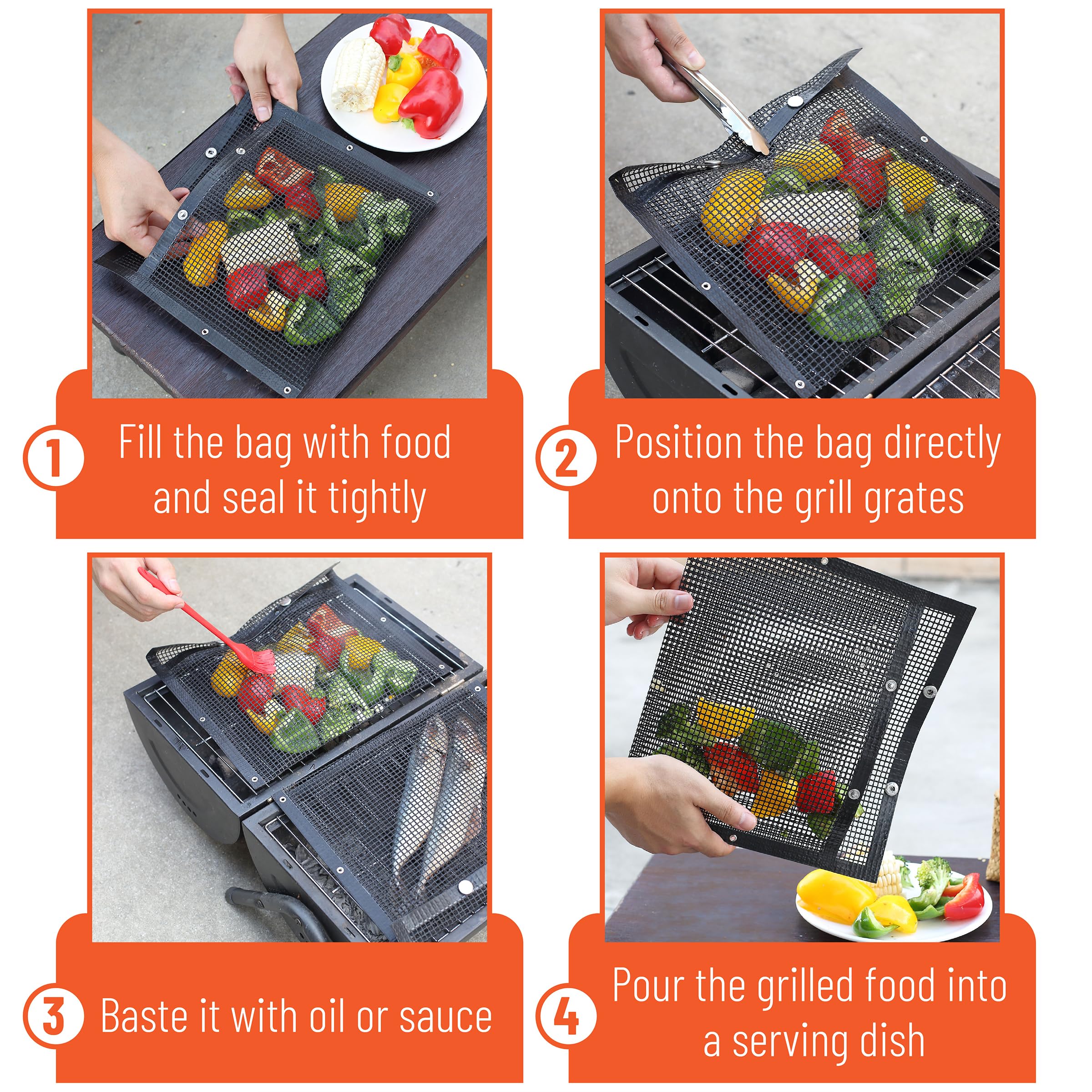 - Versatile Use: Ideal for grilling a variety of foods, from delicate seafood to chunky vegetables, these bags retain all flavors and prevent small food pieces from falling through the grill grates.
