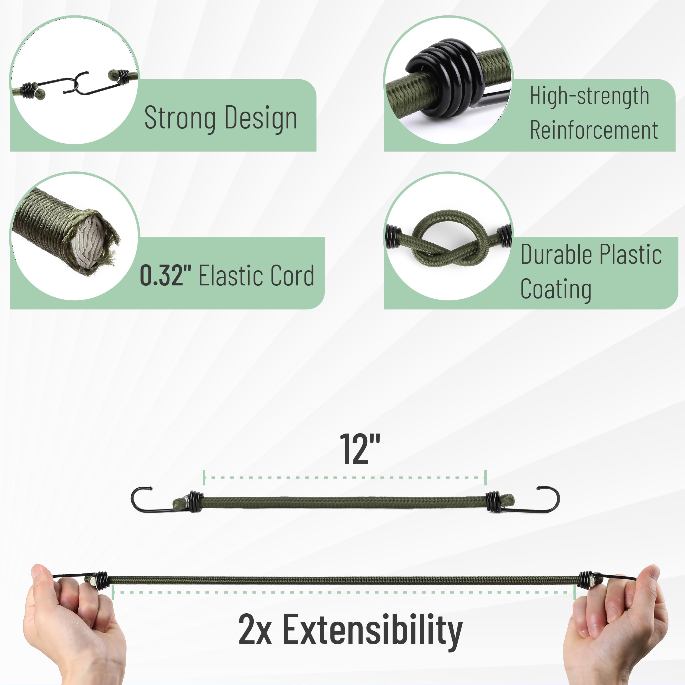 - Lightweight yet powerful, these bungee cords are compact enough for easy storage and perfectly suited for outdoor adventures, household use, or emergency situations.