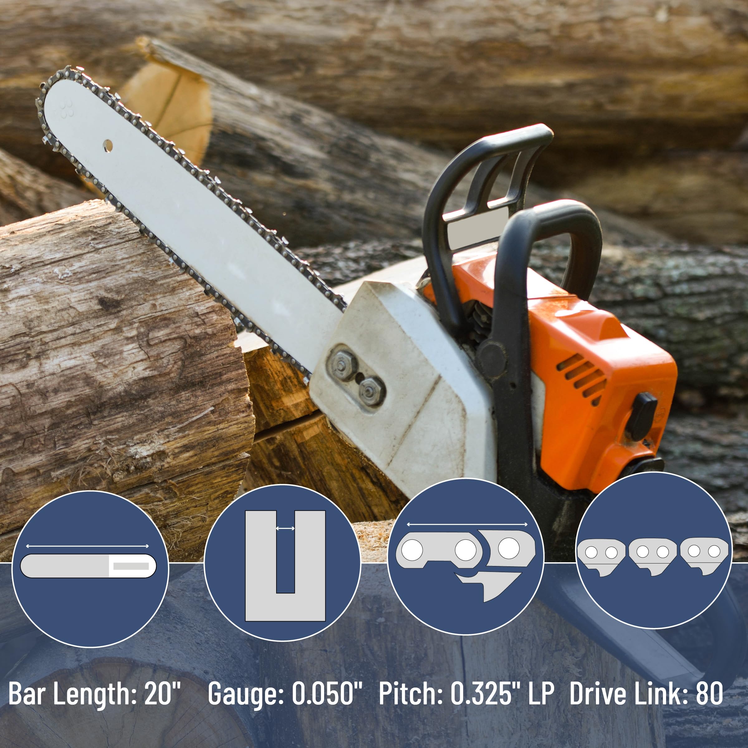 - Each chain features a 0.325" low-profile pitch, .050" gauge, and 80 drive links, making it suitable for a variety of 20-inch chainsaws.