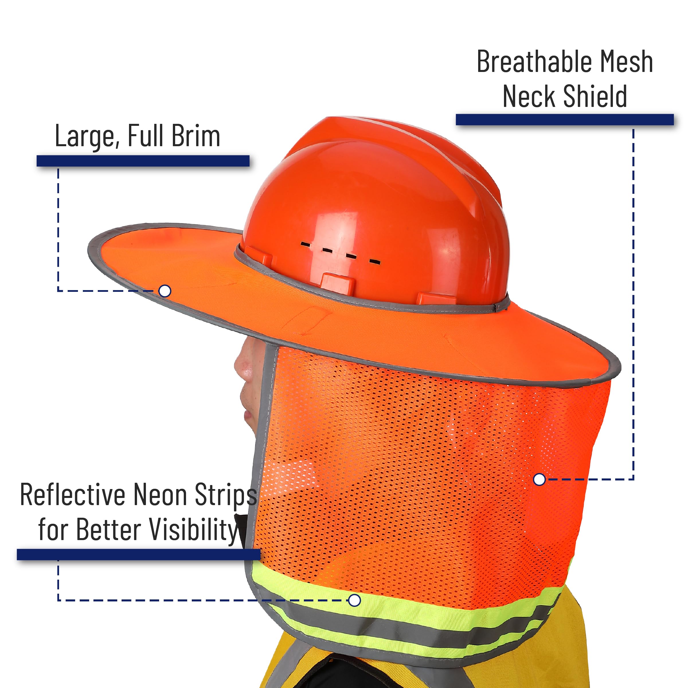 - High Visibility Reflective Strip: Enhanced with reflective strips, this sun shield not only guards against the sun but also ensures you remain visible in low light conditions, enhancing safety on the job site.