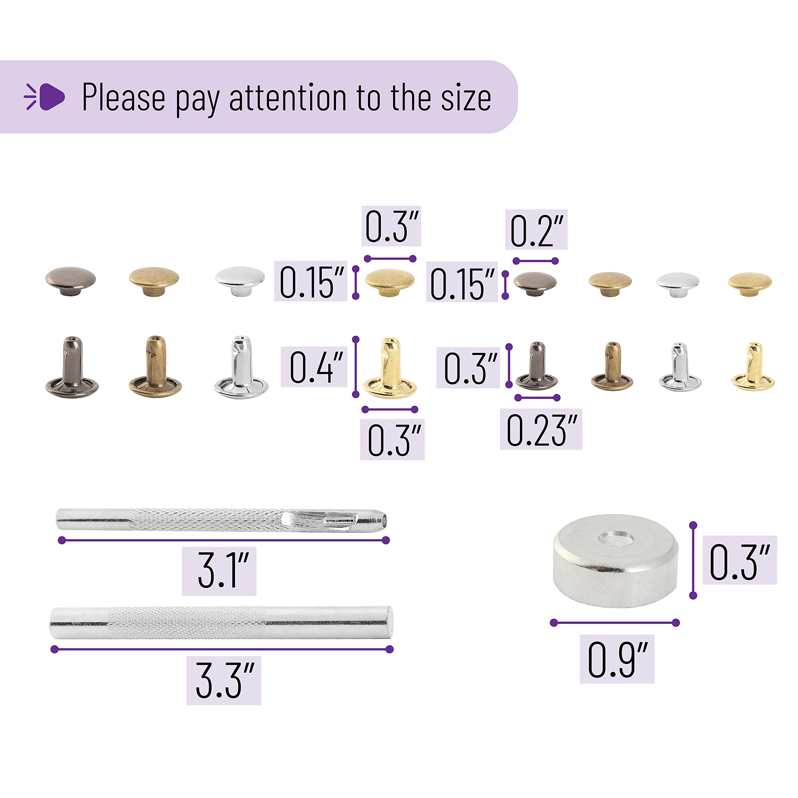 - Package includes 240 pcs of leather rivets in 2 sizes and 4 commonly used colors (gold, silver, bronze, and gunmetal).