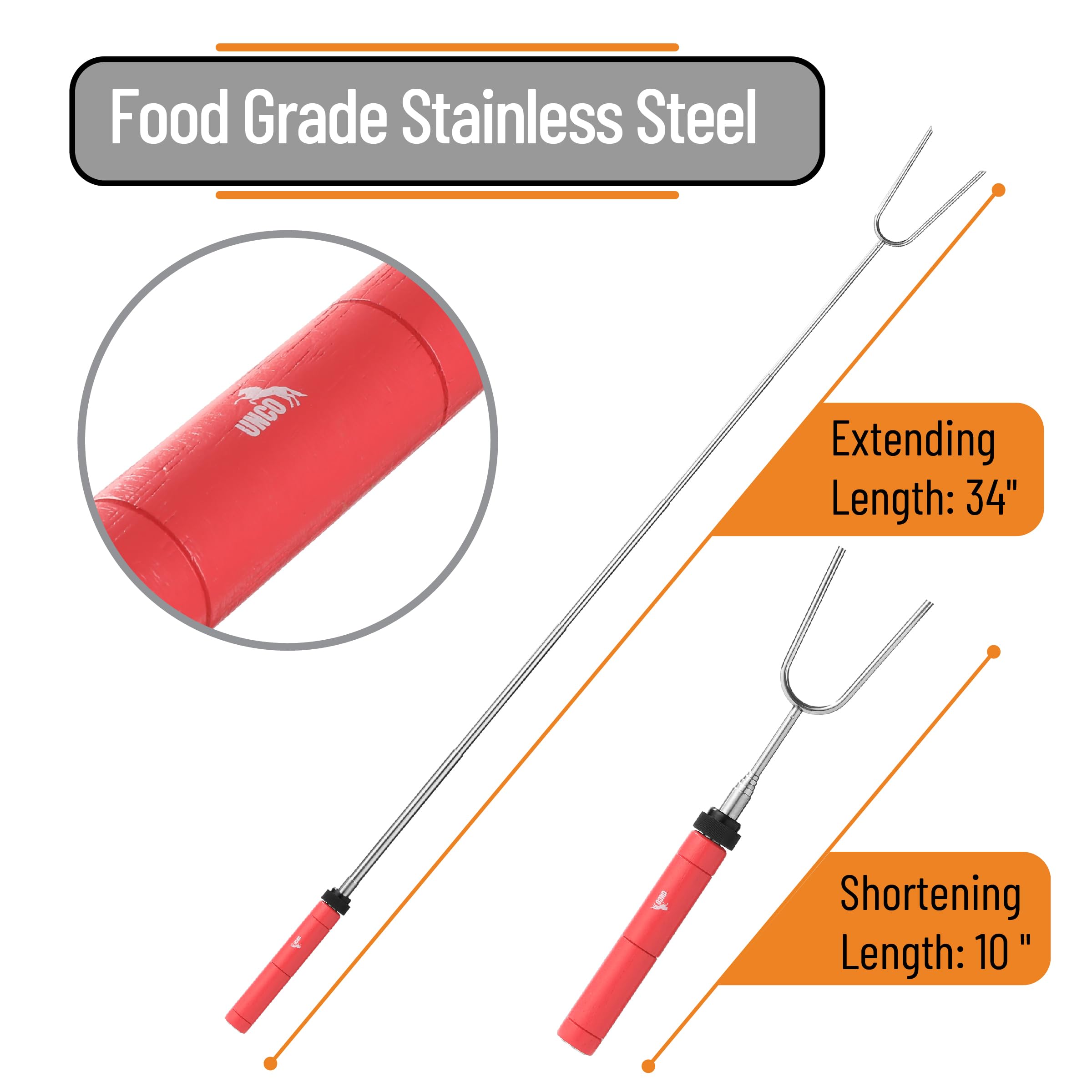 - UNCO marshmallow sticks set includes 5 colorful, extendable stainless steel roasting sticks, perfect for roasting marshmallows, hot dogs, or other treats over a fire pit or campfire.