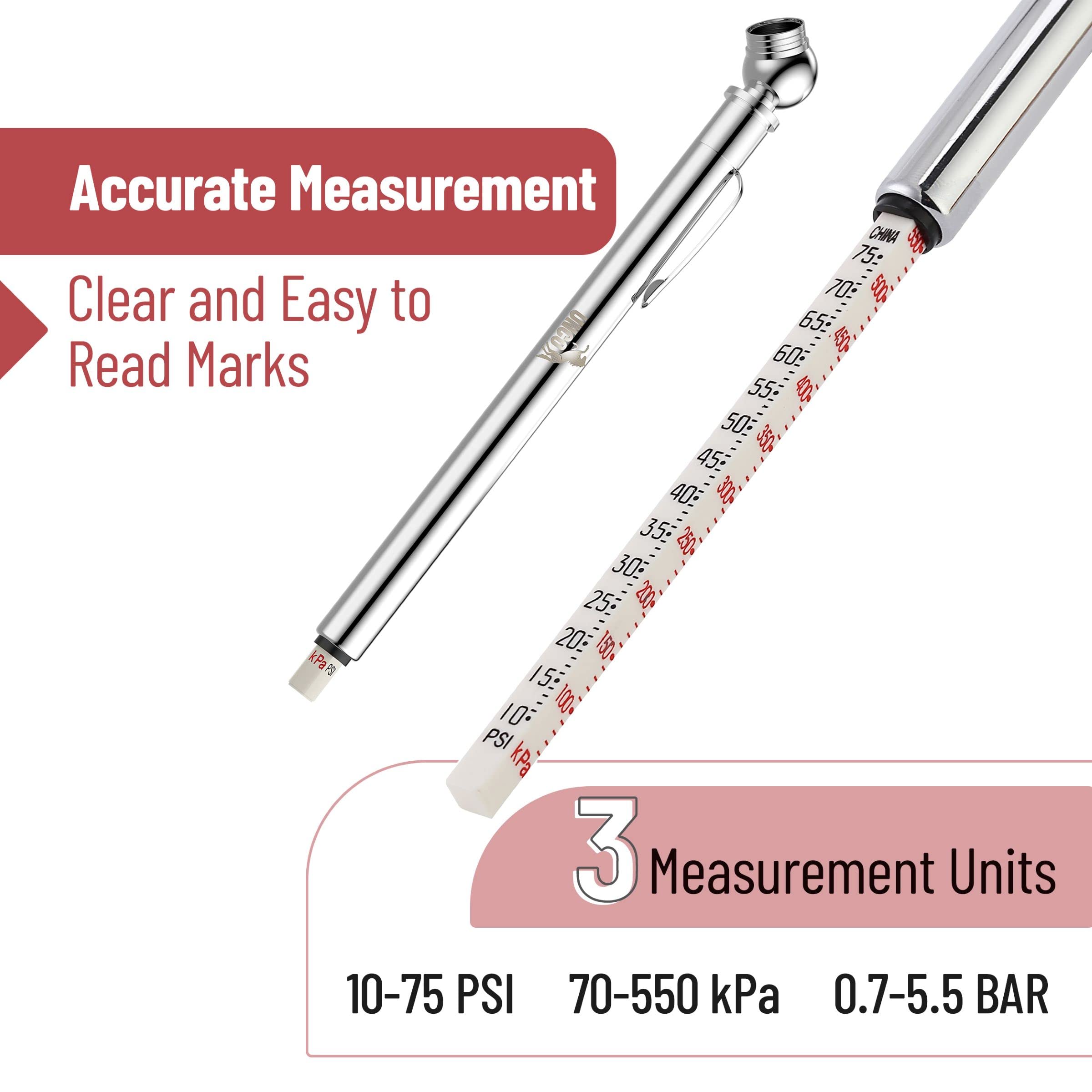 UNCO Pencil Tire Gauge, 2 Pack, 10-75 PSI, Car Tire Air Gauge