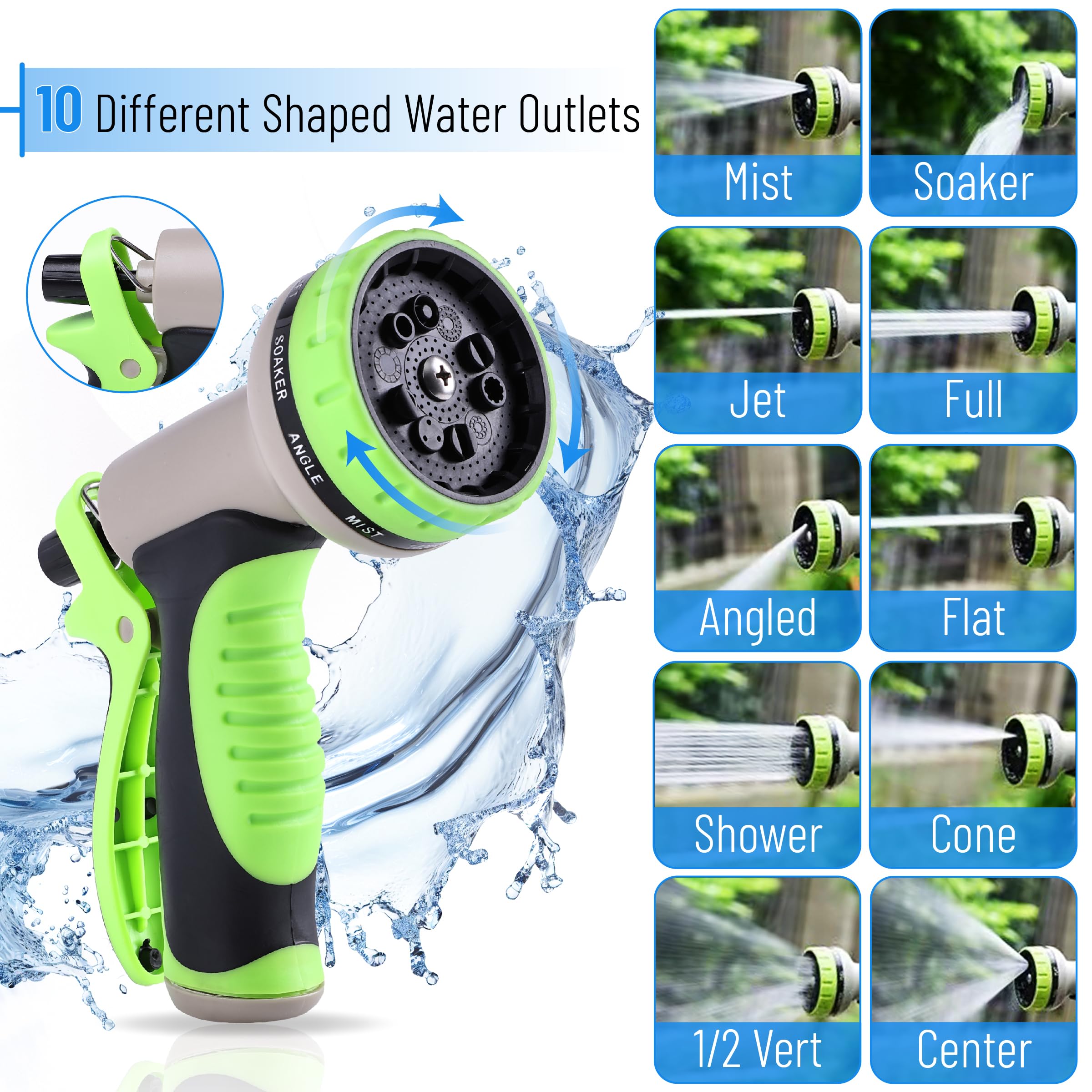 - 10-Function Nozzle: The included nozzle offers 10 different spray settings, allowing for versatile use in watering plants, cleaning, and more.